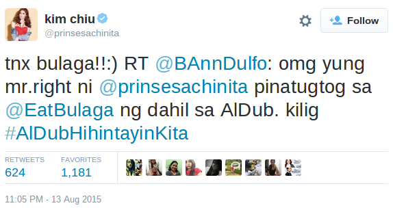 Another is a tweet of Kim Chiu where she said that she was hoity-toity with AlDub. Another tweet from Ms. Bb Gandanghari, there he said that his nephew Daniel Padilla is requesting Yaya Dub's genuine name.